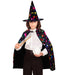 Mit diesem Kostümset verwandelt sich Ihr Kind in eine waschechte Hexe oder Zauberer! Das Set besteht aus einem Umhang - Länge ca. 70 cm - und einem dazu passenden Spitzhut. Der Umhang wird vorne am Hals geschlossen. Hut und Cape sind mit bunten Symbolen wie Katze, Hexe, Kürbis, Zauberstab und vielem mehr, was zur Zauberer Welt gehört, verziert. Einfach den Umhang überwerfen, Hut aufsetzen und schon ist Ihr Kind bereit für Halloween, Karneval oder Fasching!
